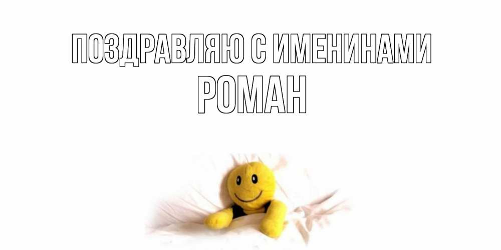 Открытка Поздравляю с именинами Роман. смайлик в колваьт. смайл, кровать