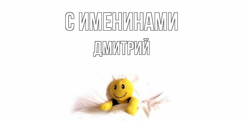 Открытка С именинами Дмитрий. смайлик в колваьт. смайл, кровать