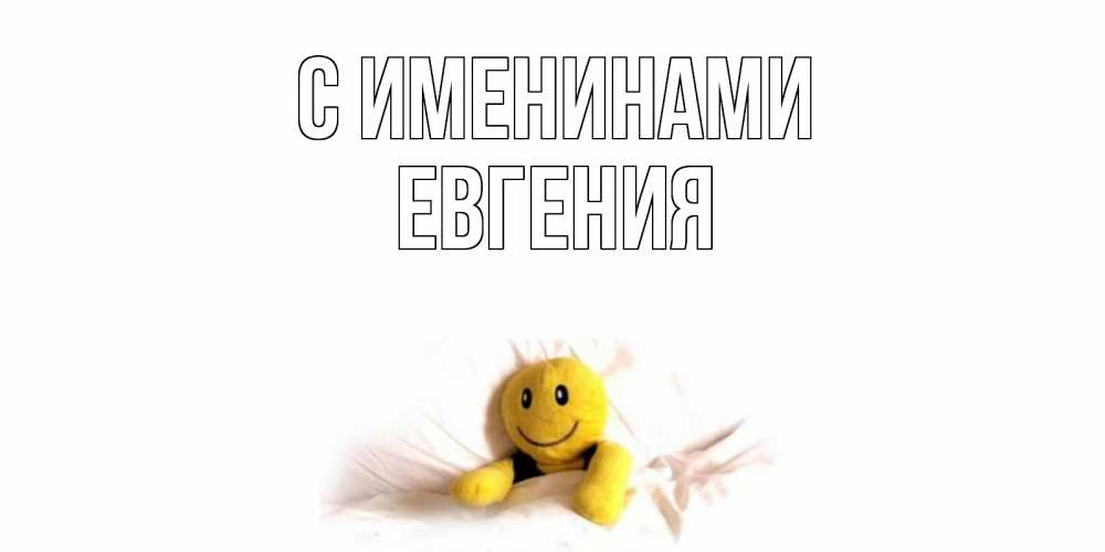 Открытка С именинами Евгения. смайлик в колваьт. смайл, кровать