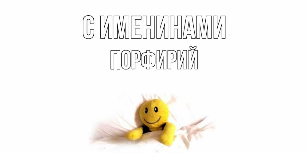 Открытка С именинами Порфирий. смайлик в колваьт. смайл, кровать