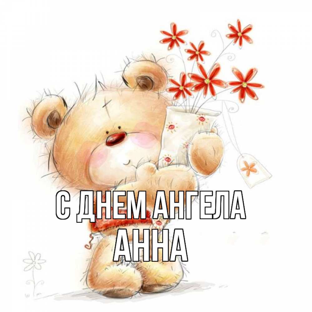 Открытка С днем Ангела Анна. мишка с ромашками. рисунок