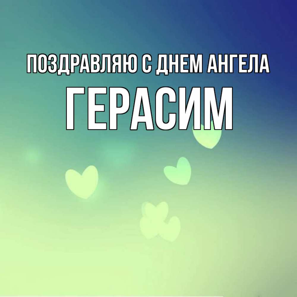 Открытка Поздравляю с днем Ангела Герасим. открытка для любимой с сердечками. градиент синий