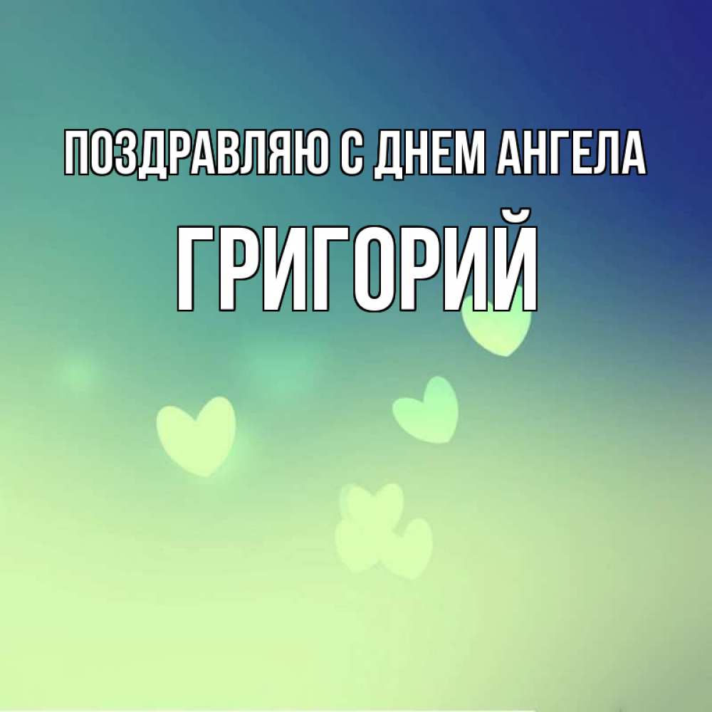 Открытка Поздравляю с днем Ангела Григорий. открытка для любимой с сердечками. градиент синий