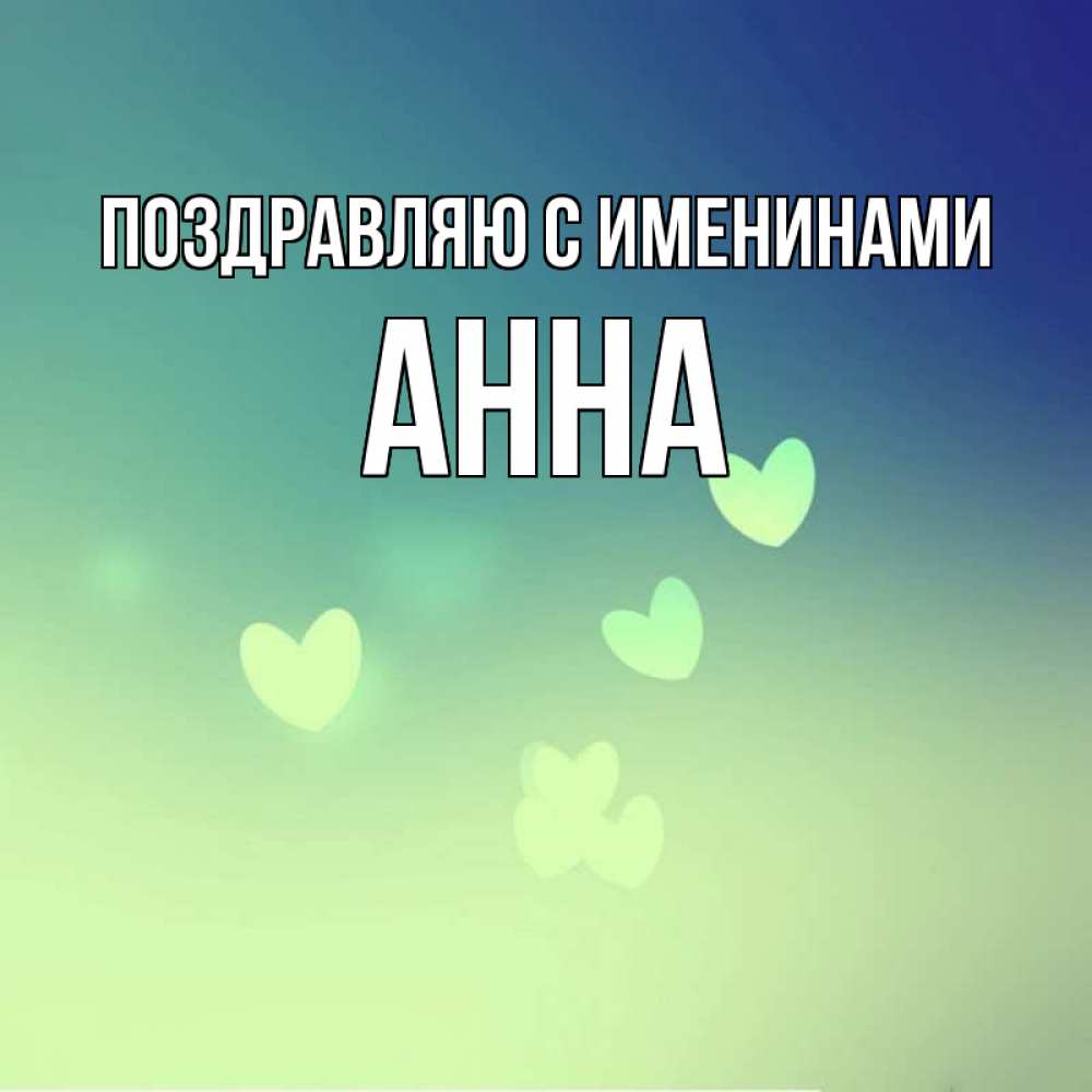 Открытка Поздравляю с именинами Анна. открытка для любимой с сердечками. градиент синий