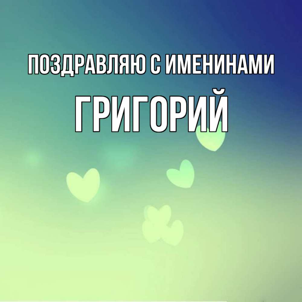 Открытка Поздравляю с именинами Григорий. открытка для любимой с сердечками. градиент синий