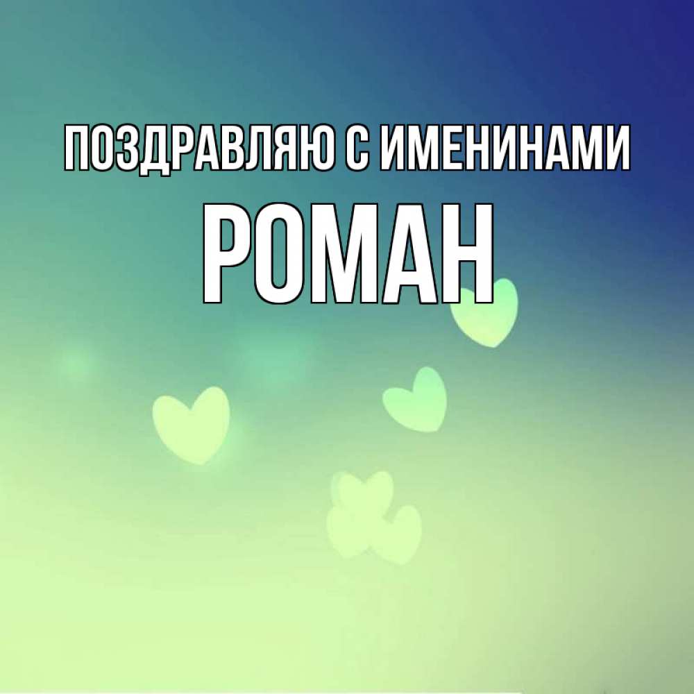 Открытка Поздравляю с именинами Роман. открытка для любимой с сердечками. градиент синий