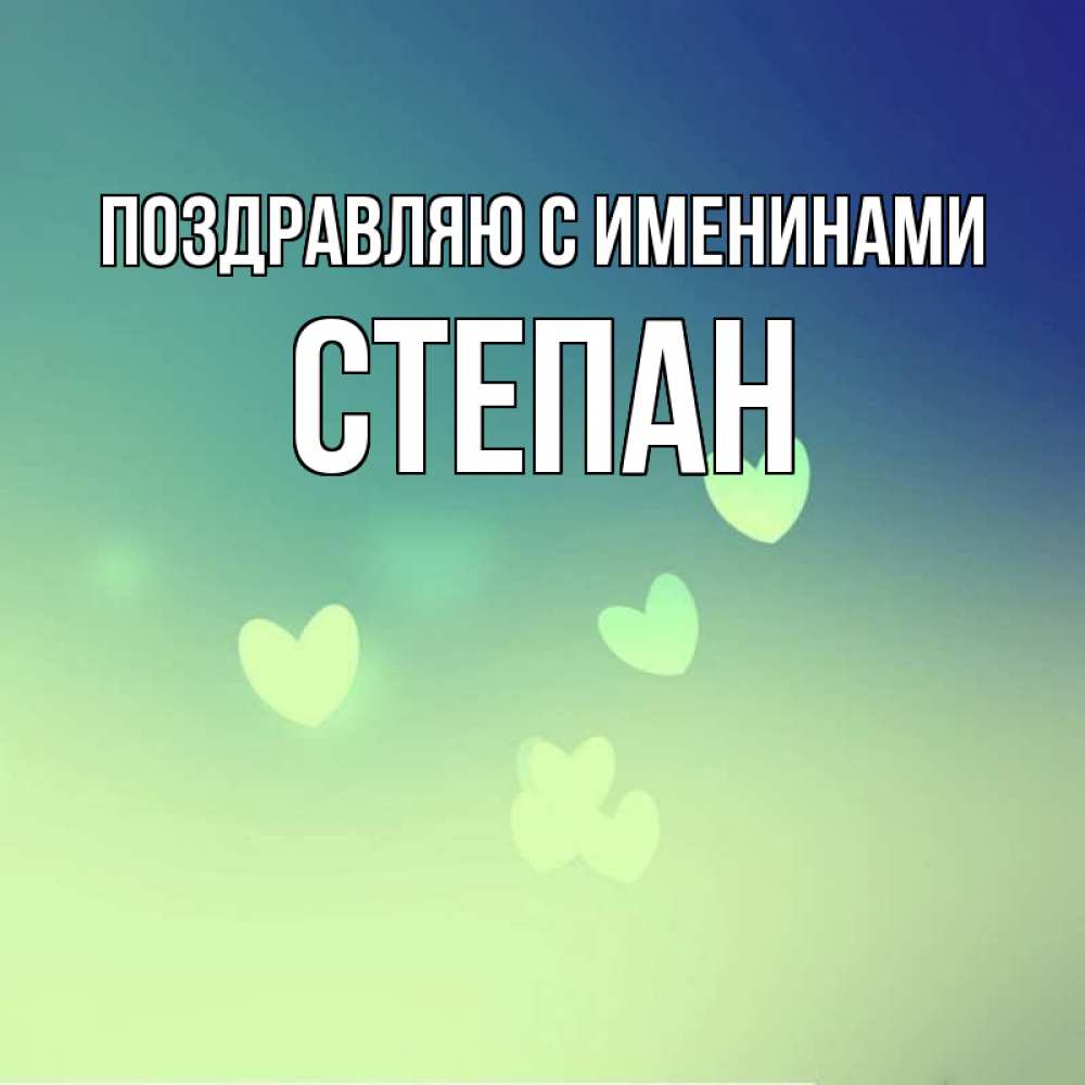 Открытка Поздравляю с именинами Степан. открытка для любимой с сердечками. градиент синий