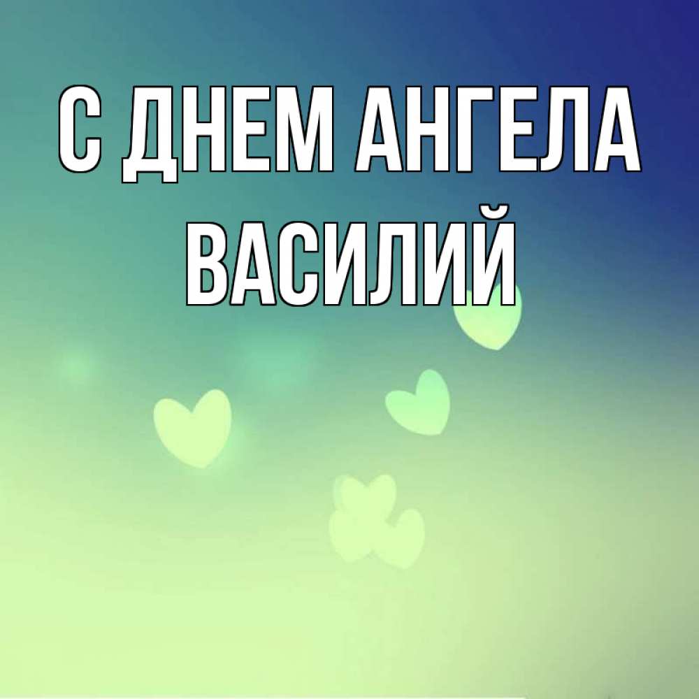 Открытка С днем Ангела Василий. открытка для любимой с сердечками. градиент синий