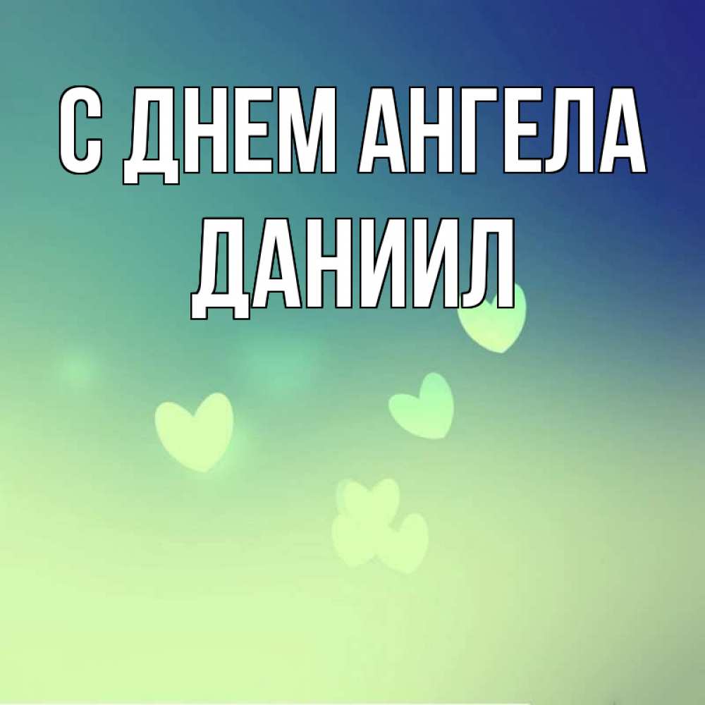 Открытка С днем Ангела Даниил. открытка для любимой с сердечками. градиент синий