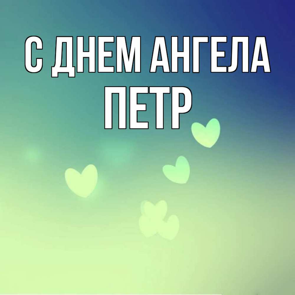 Открытка С днем Ангела Петр. открытка для любимой с сердечками. градиент синий