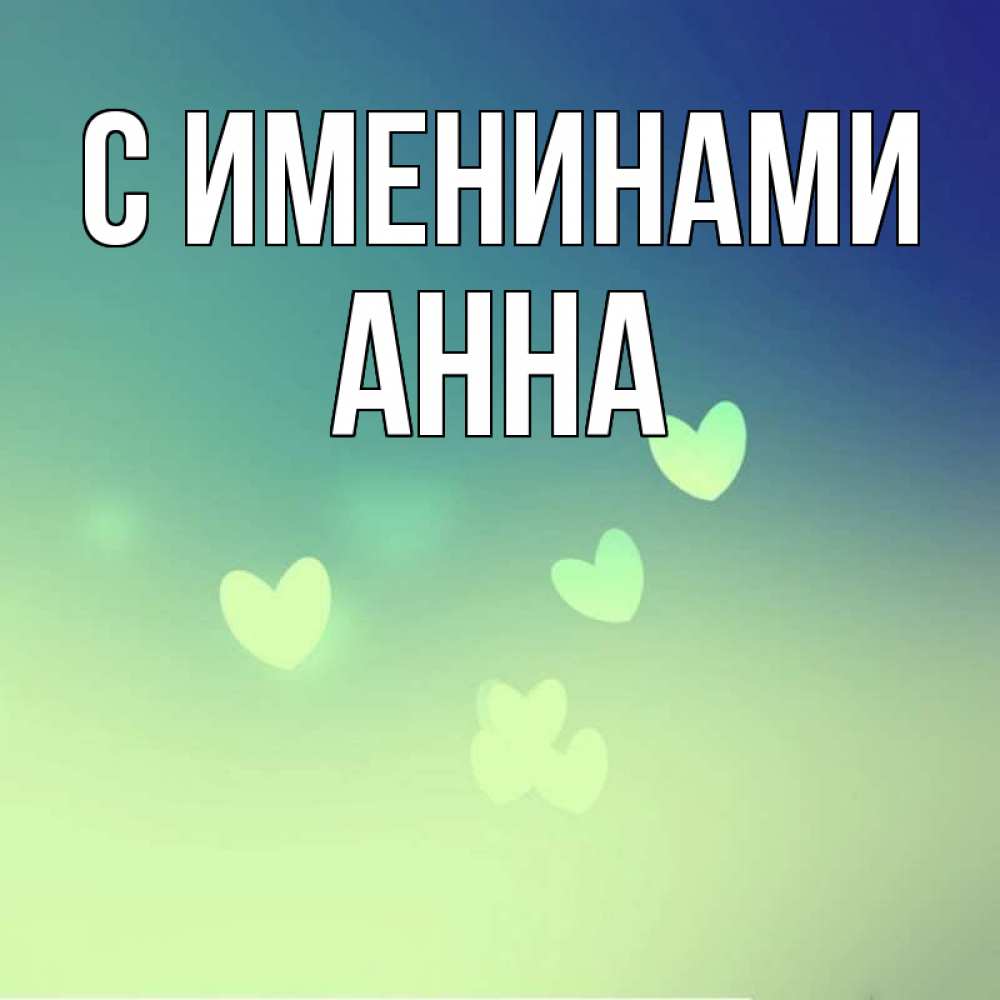 Открытка С именинами Анна. открытка для любимой с сердечками. градиент синий