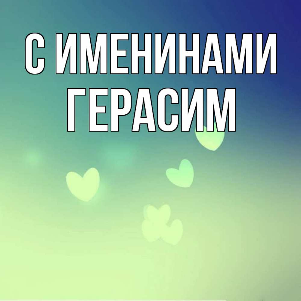 Открытка С именинами Герасим. открытка для любимой с сердечками. градиент синий