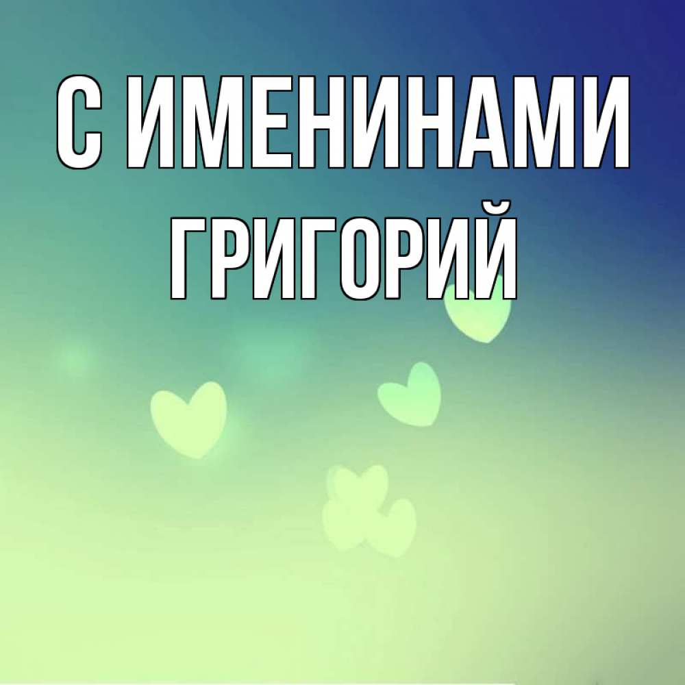 Открытка С именинами Григорий. открытка для любимой с сердечками. градиент синий