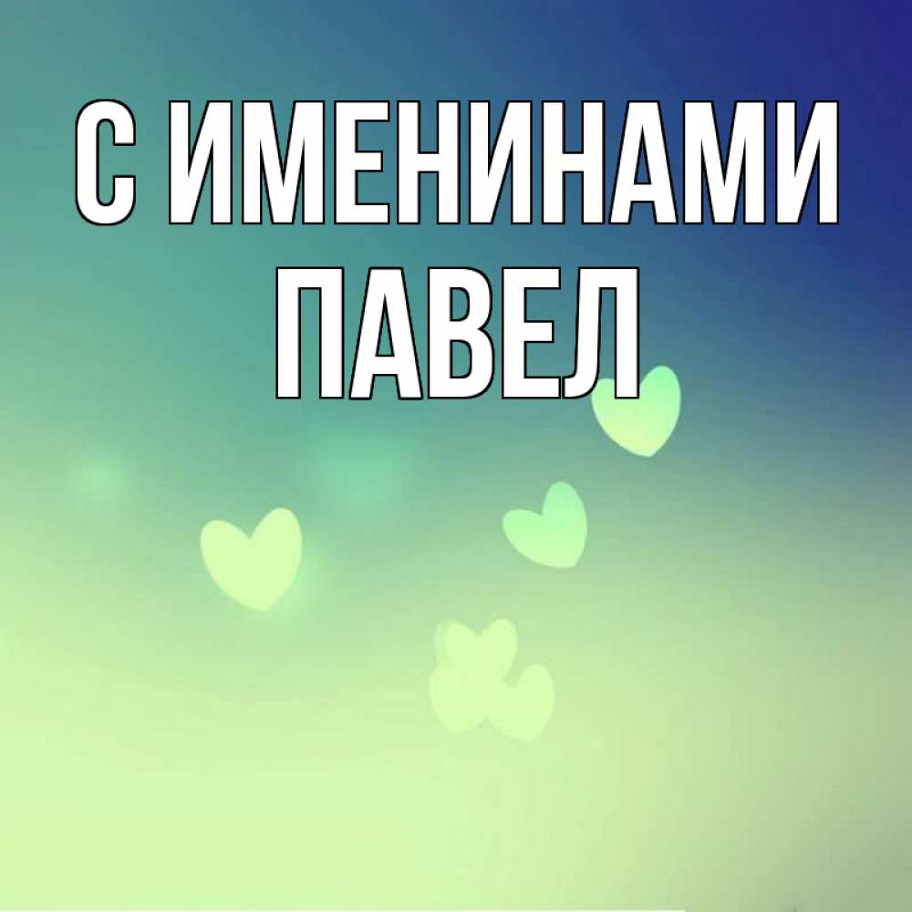 Открытка С именинами Павел. открытка для любимой с сердечками. градиент синий