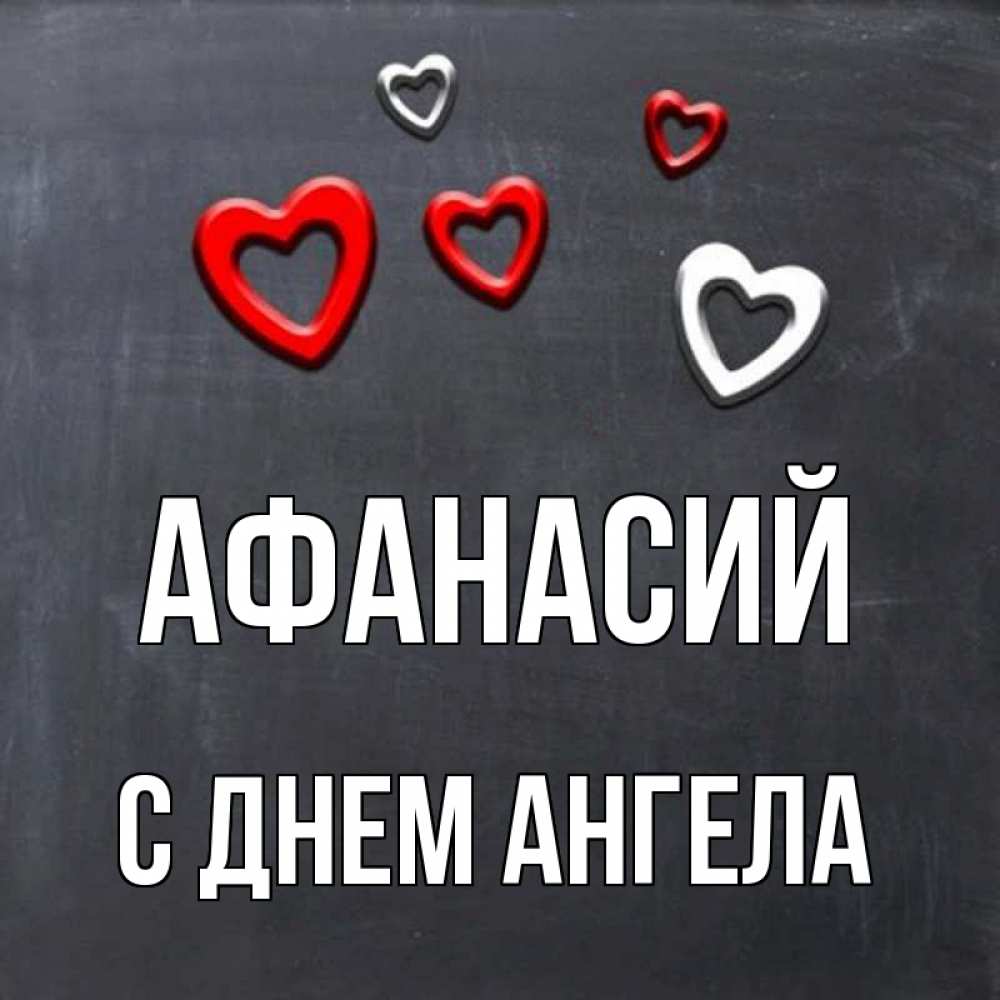 Открытка Афанасий С днем ангела. доска с магнитами в виде сердече. сердечки белые и красные
