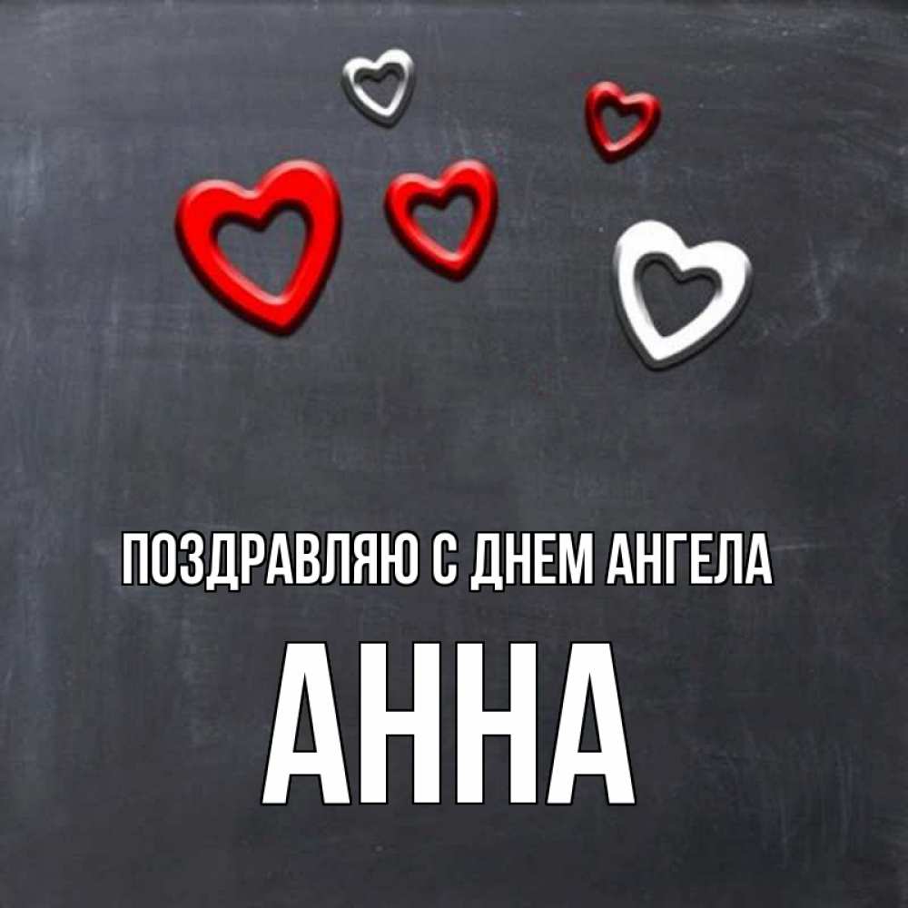 Открытка Поздравляю с днем Ангела Анна. доска с магнитами в виде сердече. сердечки белые и красные