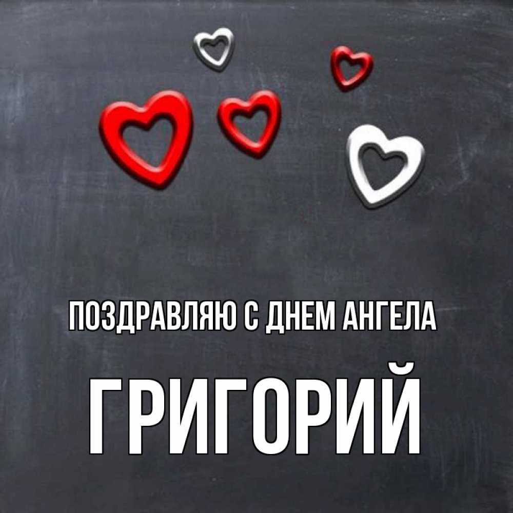 Открытка Поздравляю с днем Ангела Григорий. доска с магнитами в виде сердече. сердечки белые и красные