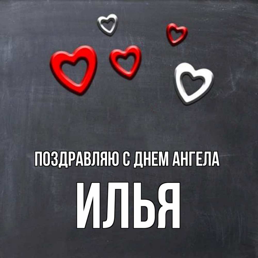 Открытка Поздравляю с днем Ангела Илья. доска с магнитами в виде сердече. сердечки белые и красные
