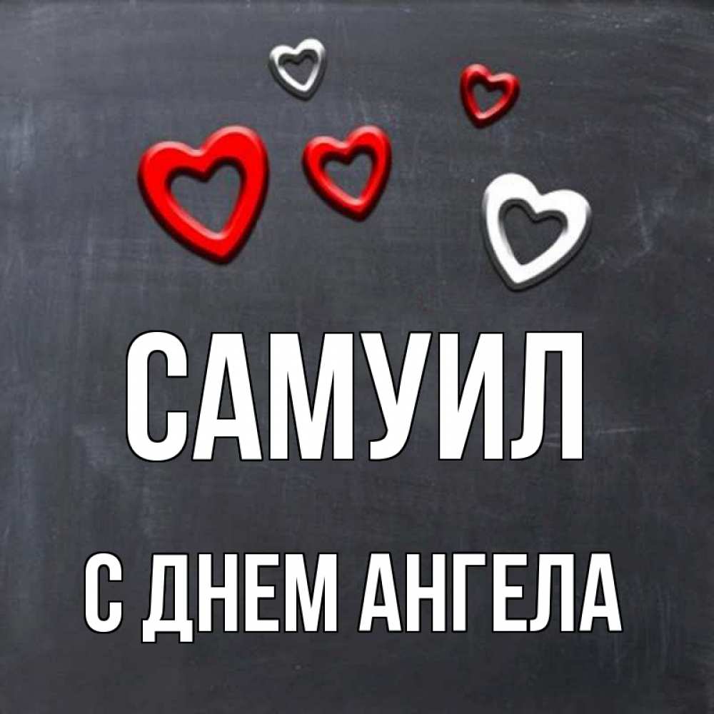 Открытка Самуил С днем ангела. доска с магнитами в виде сердече. сердечки белые и красные