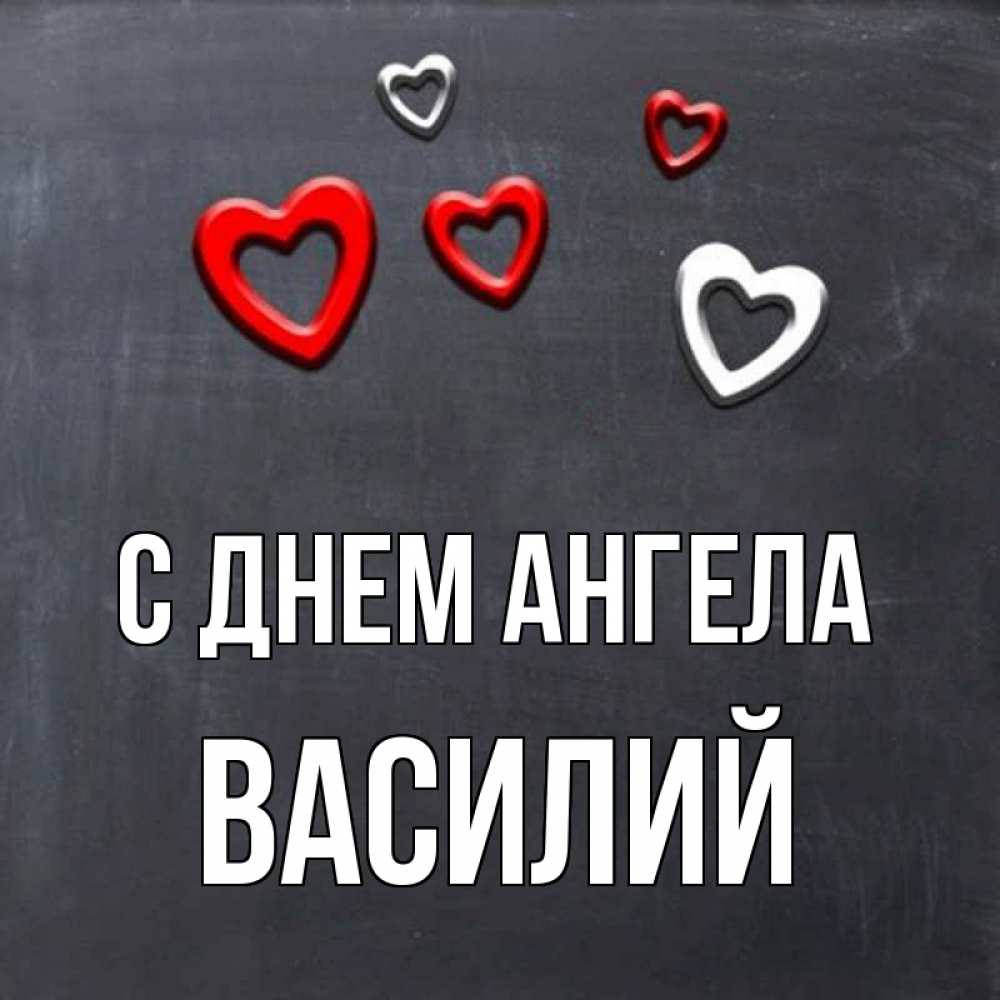 Открытка С днем Ангела Василий. доска с магнитами в виде сердече. сердечки белые и красные