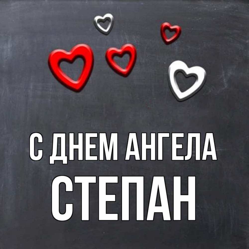 Открытка С днем Ангела Степан. доска с магнитами в виде сердече. сердечки белые и красные