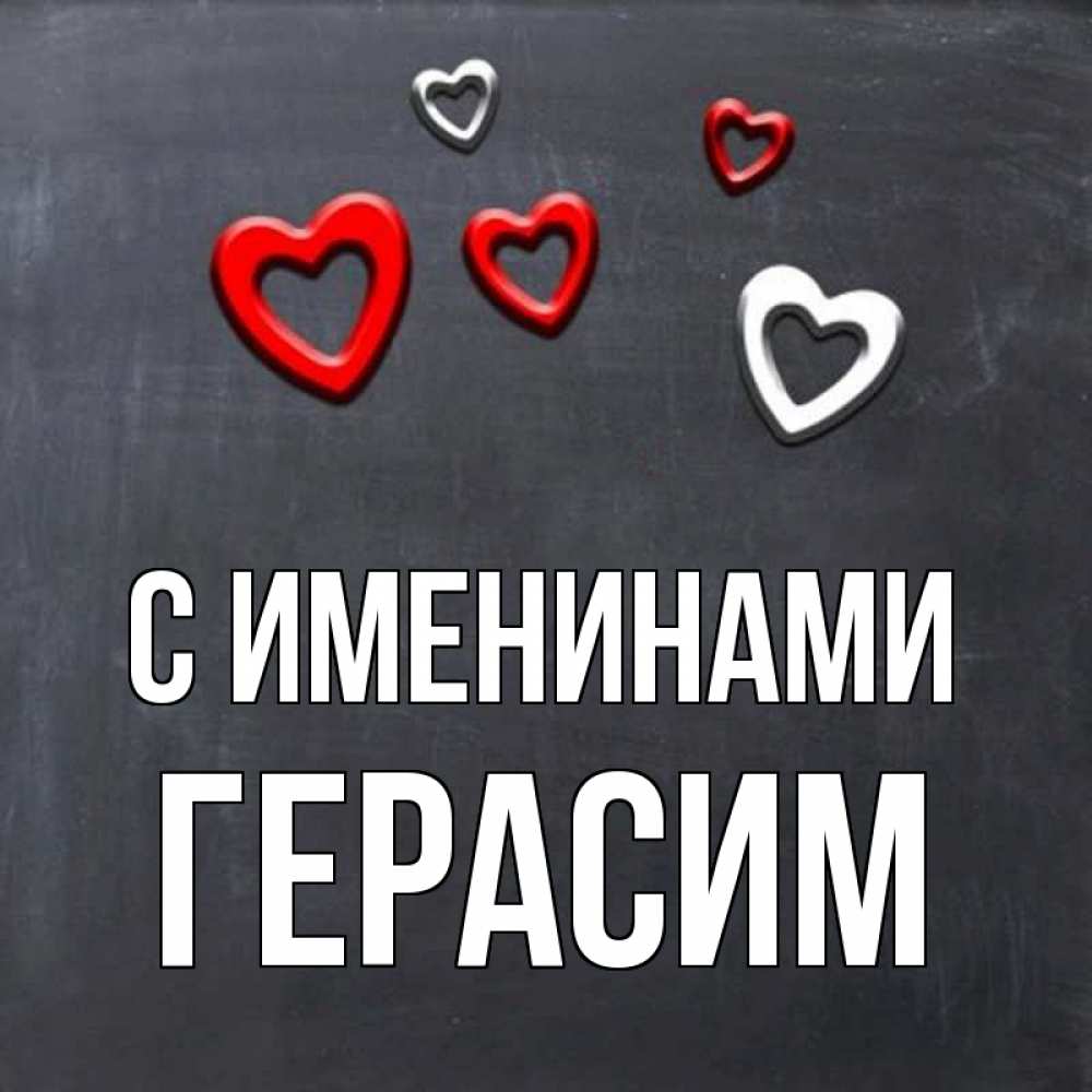 Открытка С именинами Герасим. доска с магнитами в виде сердече. сердечки белые и красные