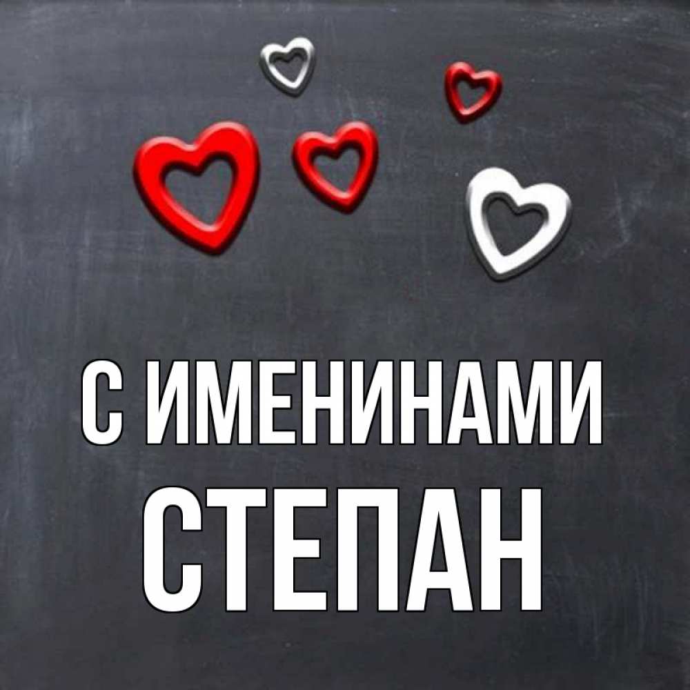 Открытка С именинами Степан. доска с магнитами в виде сердече. сердечки белые и красные