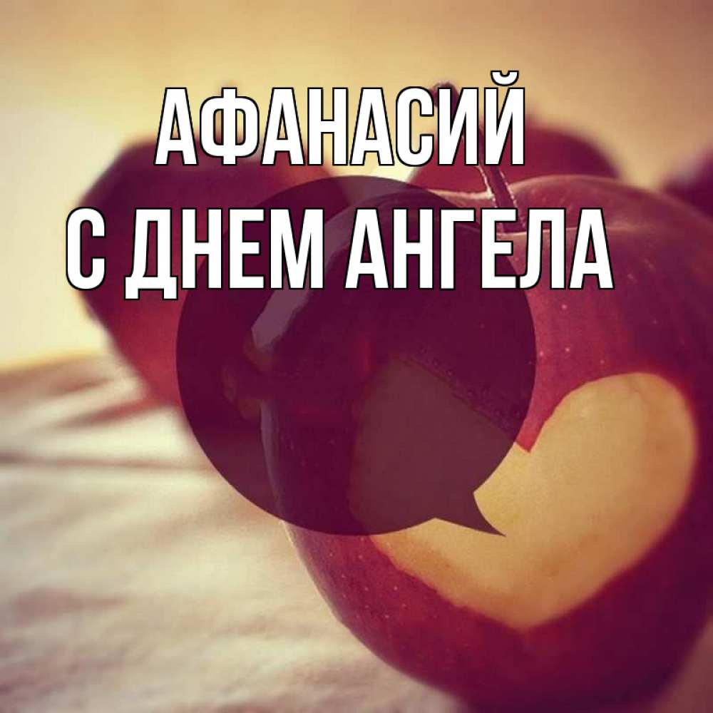 Открытка Афанасий С днем ангела. яблоко с сердцем. вырезалки из яблок
