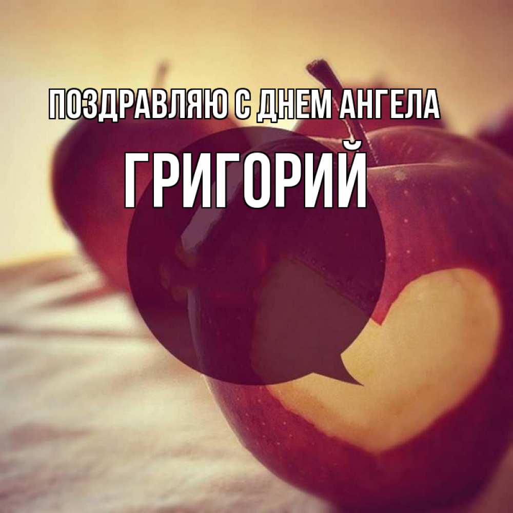 Открытка Поздравляю с днем Ангела Григорий. яблоко с сердцем. вырезалки из яблок