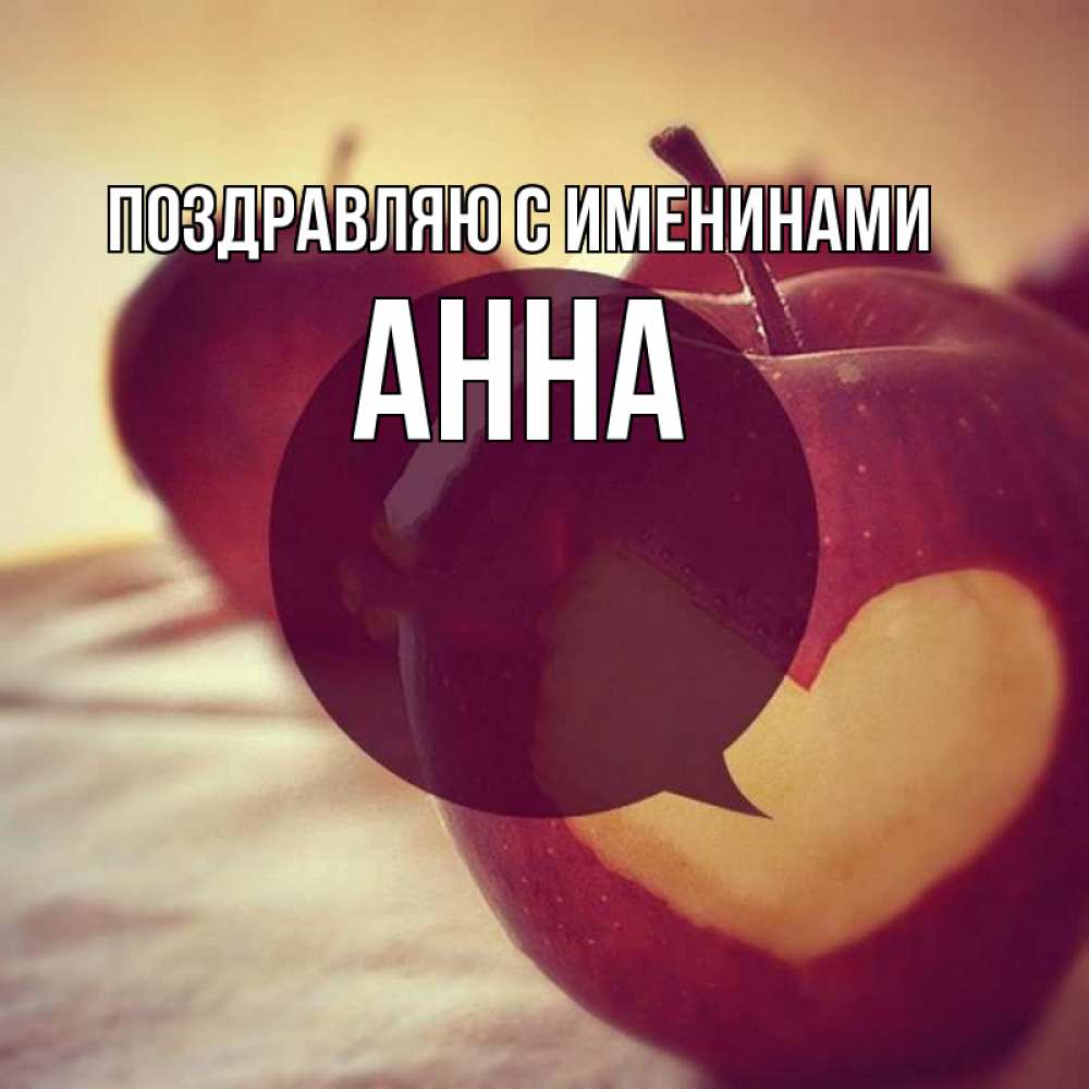 Открытка Поздравляю с именинами Анна. яблоко с сердцем. вырезалки из яблок