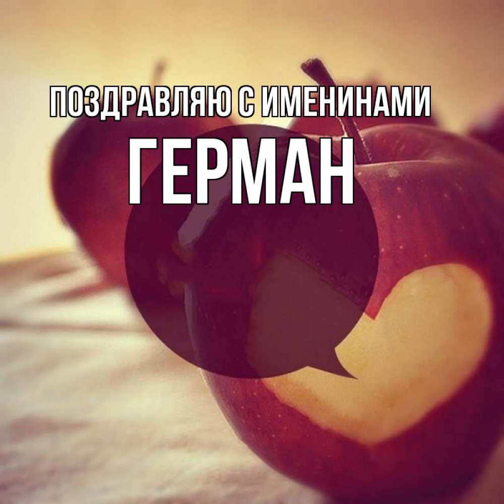 Открытка Поздравляю с именинами Герман. яблоко с сердцем. вырезалки из яблок