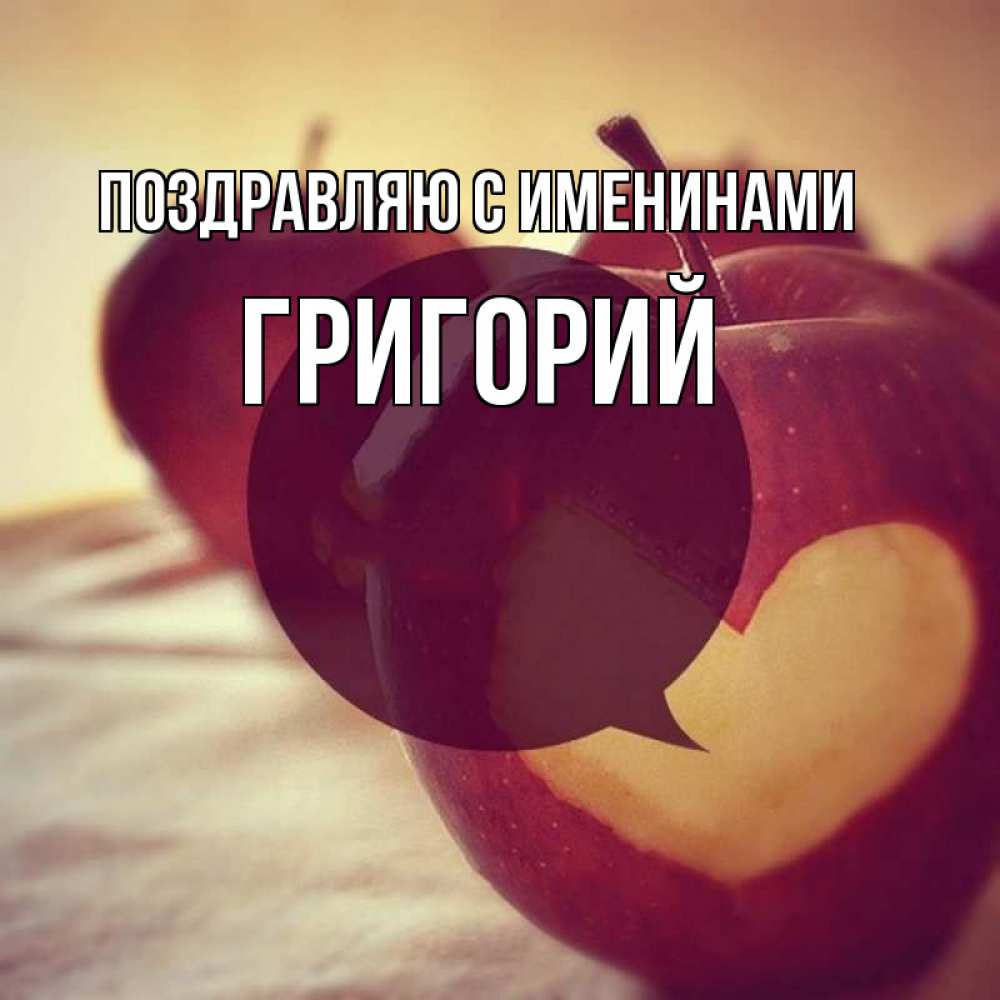 Открытка Поздравляю с именинами Григорий. яблоко с сердцем. вырезалки из яблок