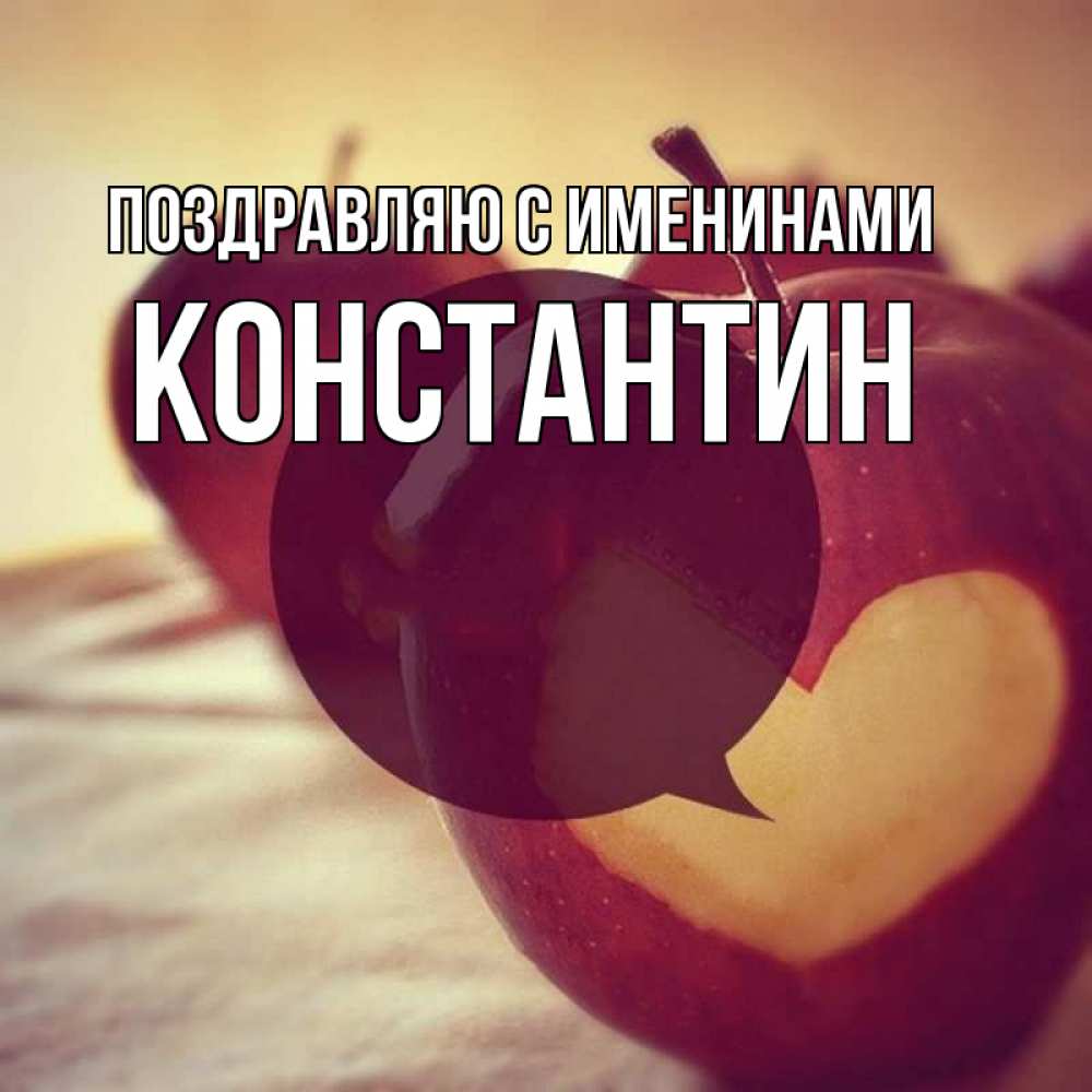 Открытка Поздравляю с именинами Константин. яблоко с сердцем. вырезалки из яблок