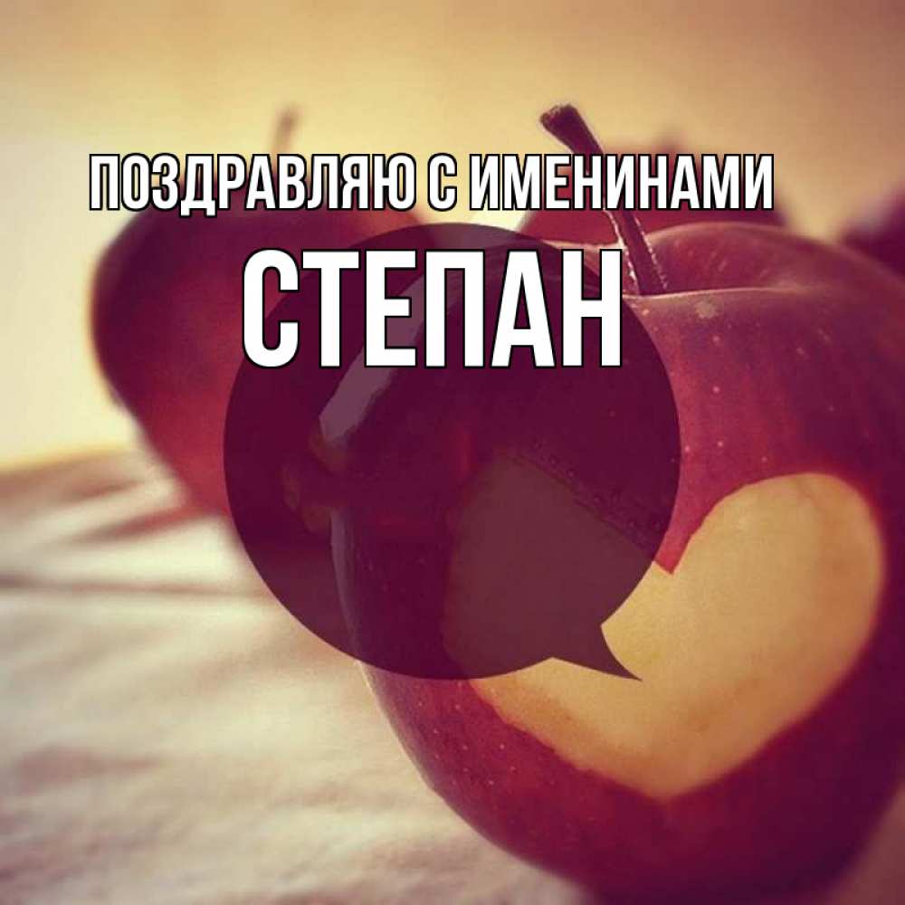Открытка Поздравляю с именинами Степан. яблоко с сердцем. вырезалки из яблок