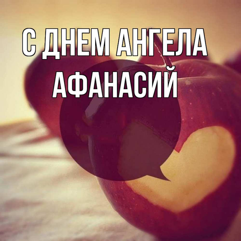 Открытка С днем Ангела Афанасий. яблоко с сердцем. вырезалки из яблок