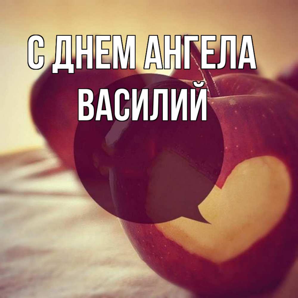 Открытка С днем Ангела Василий. яблоко с сердцем. вырезалки из яблок