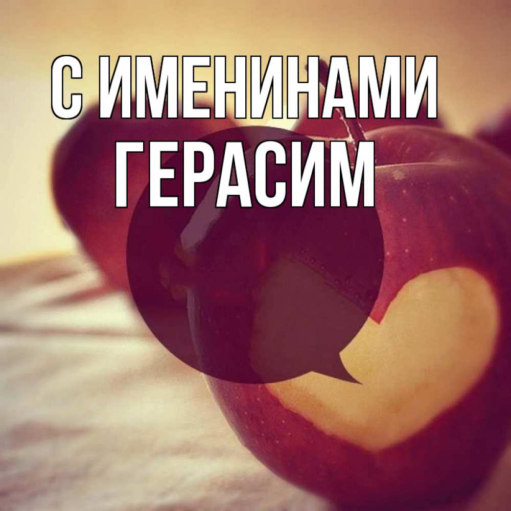 Открытка С именинами Герасим. яблоко с сердцем. вырезалки из яблок