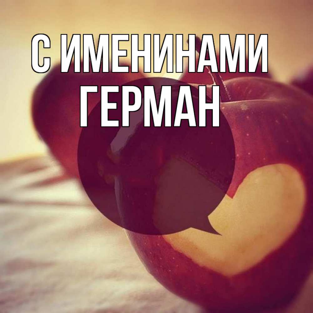 Открытка С именинами Герман. яблоко с сердцем. вырезалки из яблок