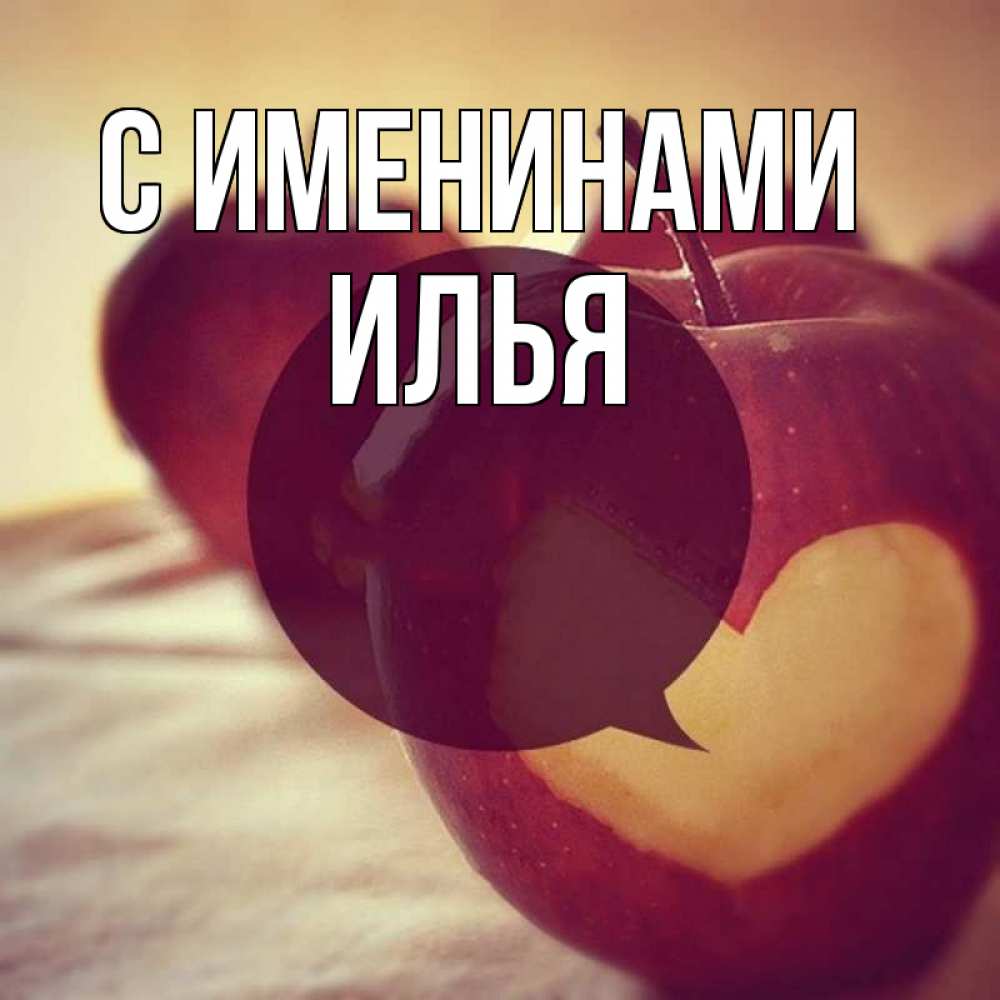 Открытка С именинами Илья. яблоко с сердцем. вырезалки из яблок