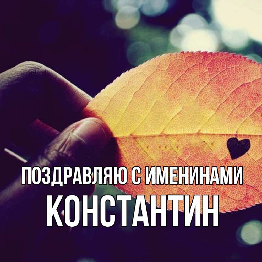 Открытка Поздравляю с именинами Константин. листик с сердцем. держу лист