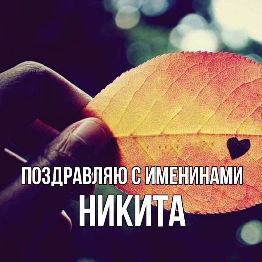 Открытка Поздравляю с именинами Никита. листик с сердцем. держу лист