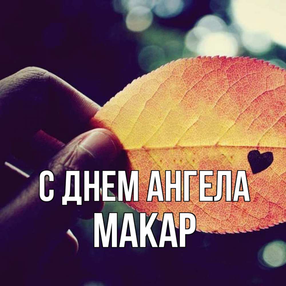 Открытка С днем Ангела Макар. листик с сердцем. держу лист