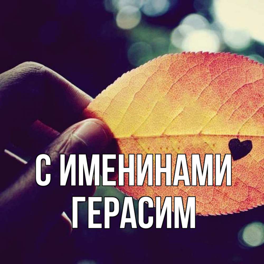 Открытка С именинами Герасим. листик с сердцем. держу лист