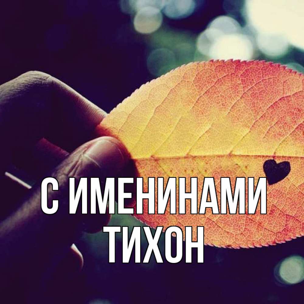 Открытка С именинами Тихон. листик с сердцем. держу лист