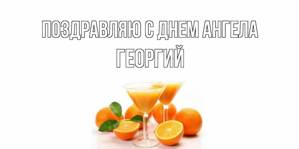 Открытка Поздравляю с днем Ангела Георгий. апельсиновый сок. апельсин