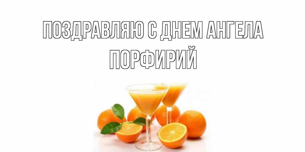 Открытка Поздравляю с днем Ангела Порфирий. апельсиновый сок. апельсин