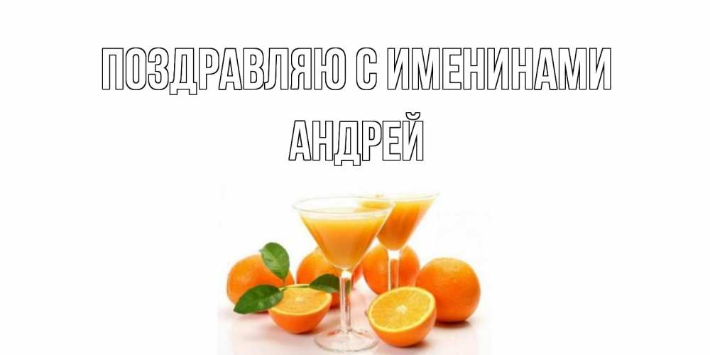 Открытка Поздравляю с именинами Андрей. апельсиновый сок. апельсин