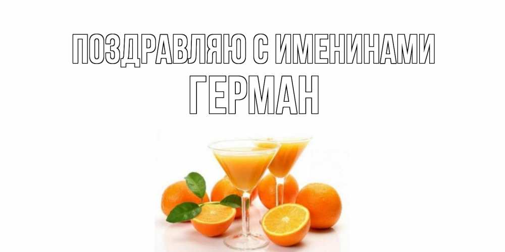 Открытка Поздравляю с именинами Герман. апельсиновый сок. апельсин
