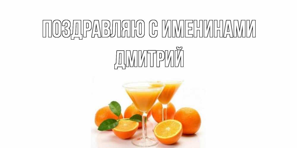 Открытка Поздравляю с именинами Дмитрий. апельсиновый сок. апельсин