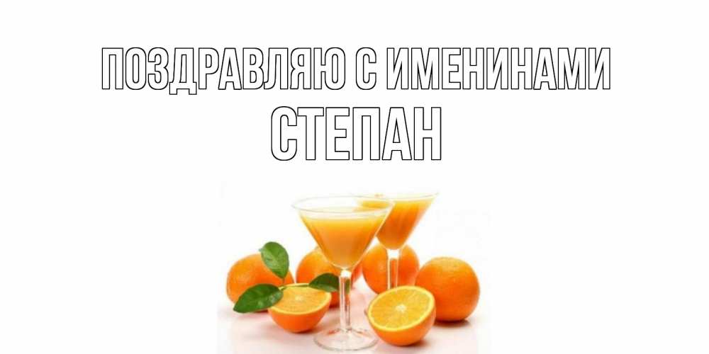 Открытка Поздравляю с именинами Степан. апельсиновый сок. апельсин